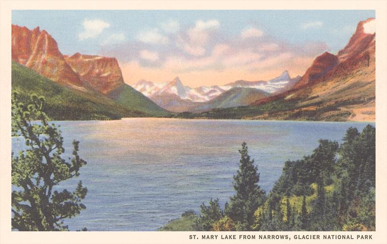 MT-55 St. Mary Lake, Glacier Park, Montana - Vintage Image