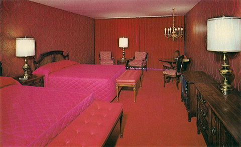 MR-07 Extremely Red Motel Room Interior - Vintage Image