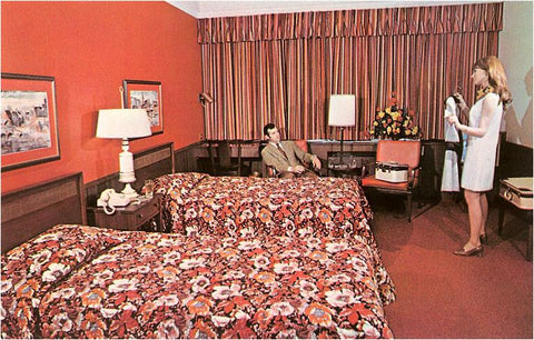 MR-27 Motel Room with Pink Bedspreads - Vintage Image