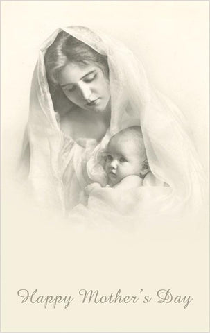 MY-45 Happy Mothers Day, Mother and Child in Veil - Vintage Image