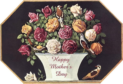 MY-78 Happy Mother's Day, Urn of Roses - Vintage Image