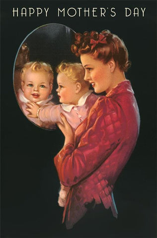 MY-120 Happy Mother's Day, Child in Mirror - Vintage Image