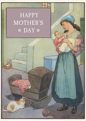 MY-127 Happy Mother's Day, Mother Cradling Baby - Vintage Image