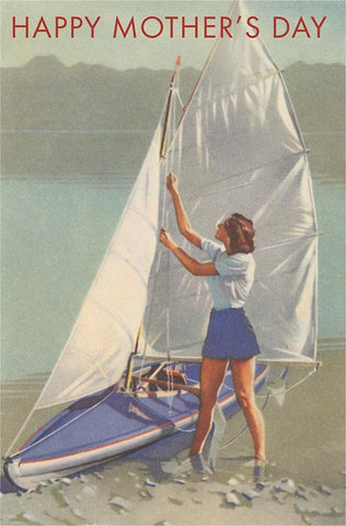 MY-154 Woman with Small Sailboat, Happy Mother's Day - Vintage Image