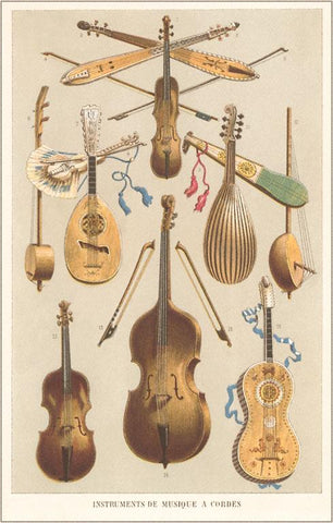 MS-128 Variety of Stringed Instruments - Vintage Image