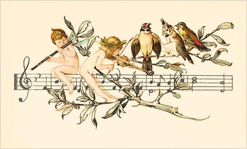 MS-194 Angel and Bird Chorus on Staff - Vintage Image