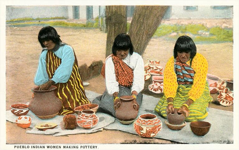 NA-13 Pueblo Indian Women Making Pottery - Vintage Image