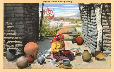 NA-28 Papago Indian Making Pottery - Vintage Image