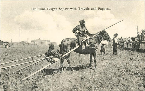 NA-146 Piegan Squaw with Travois and Papoose - Vintage Image
