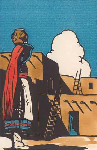 NA-229 Pueblo Indian Woman with Pot - Vintage Image