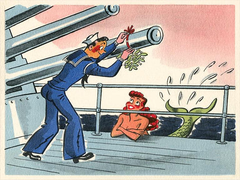 NZ-74 Sailor and Mermaid Cartoon - Vintage Image
