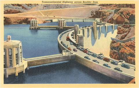 NV-201 Transcontinental Highway over Boulder Dam, Nevada - Vintage Image