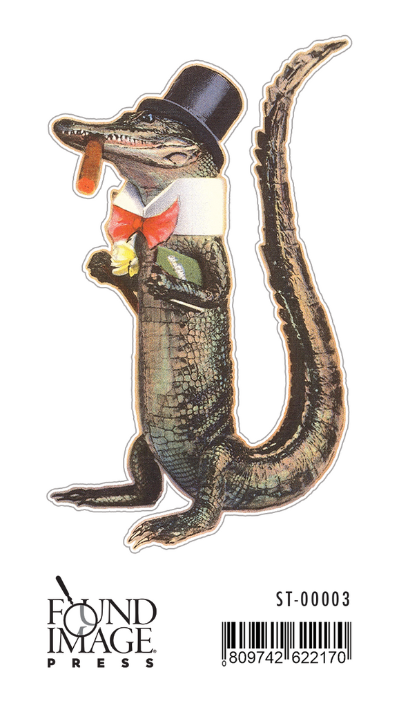 ST-03 Alligator in Top Hat - Vintage Image, Sticker - 12 qty