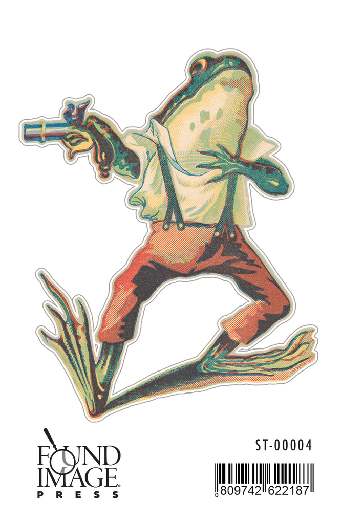 ST-04 Frog with Pistol - Vintage Image, Sticker - 12 qty