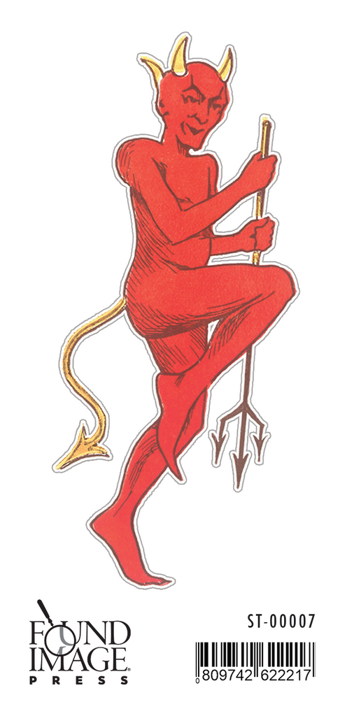 This long lasting, die cut, vinyl sticker of a red devil prancing with a pitchfork is distiled from images DM-21 and DM-15 in our Devils and Demons category and image LT-180 in our Literature and Letters category. It's perfect for adding a bit of vintage pizzaz to water bottles, notebooks, laptops or any other surface that needs a little pick-me-up. Made in the USA.