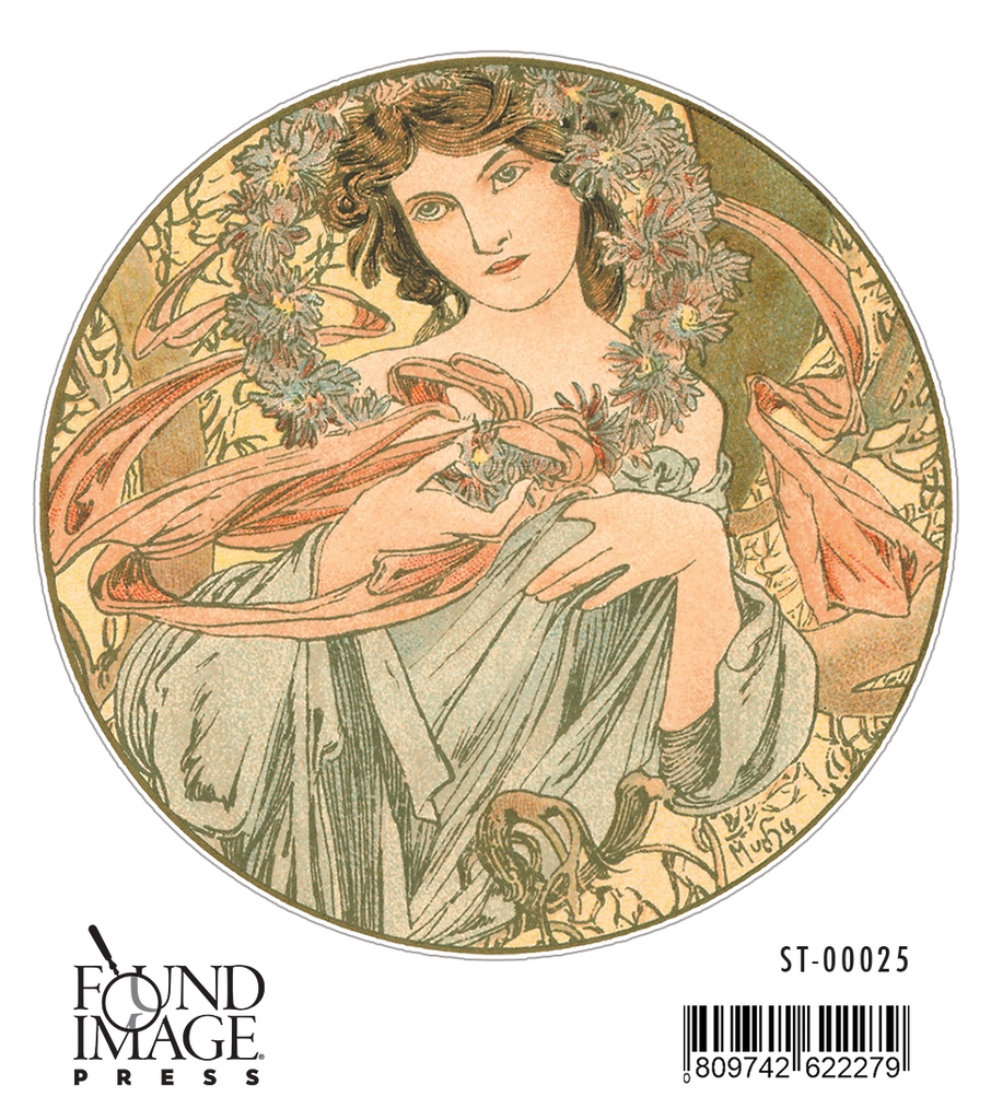 ST-25 Mucha Woman with Wreath - Vintage Image, Sticker - 12 qty