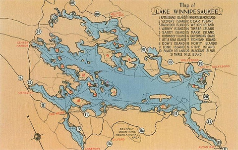 NH-773 Map of Lake Winnipesaukee - Vintage Image