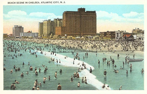 NJ-20 Beach Scene, Atlantic City, New Jersey - Vintage Image
