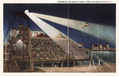 NJ-32 Acrobats on Pier, Atlantic City, New Jersey - Vintage Image
