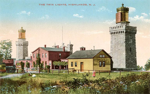 NJ-52 Twin Lighthouses, Highlands, New Jersey - Vintage Image