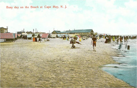 NJ-113 Beach Scene, Cape May, New Jersey - Vintage Image