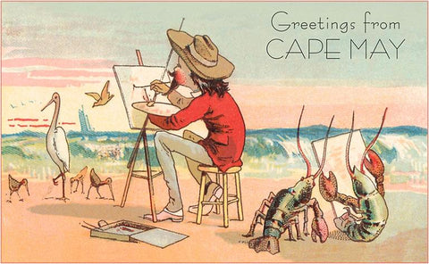 NJ-235 Greetings from Cape May, New Jersey, Artist on Beach - Vintage Image
