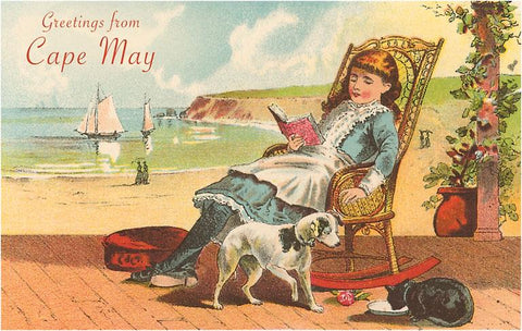 NJ-237 Greetings from Cape May, New Jersey, Girl on Porch - Vintage Image