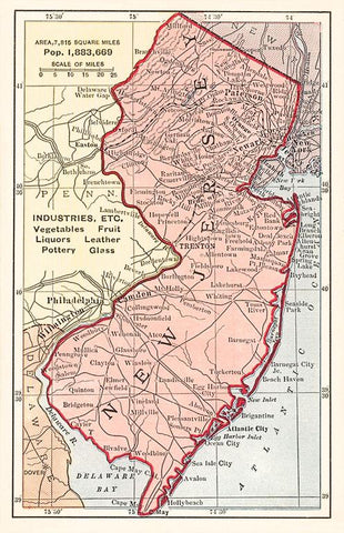 NJ-408 Vintage Map of New Jersey - Vintage Image