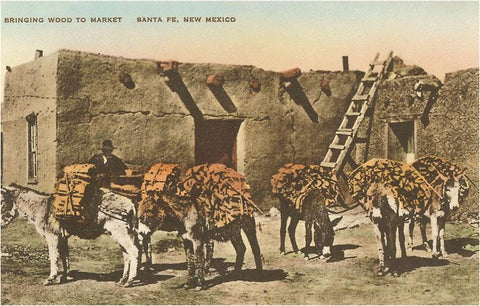 NM-98 Burros with Firewood, Santa Fe, New Mexico - Vintage Image
