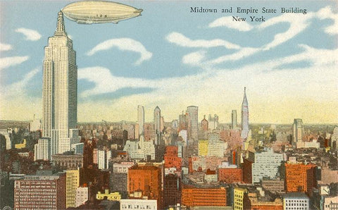 NY-06 Blimp over Midtown Manhattan - Vintage Image