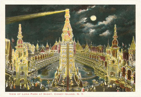 NY-137 Moon over Luna Park, Coney Island, New York City - Vintage Image