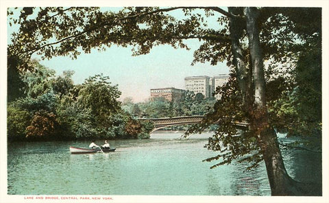 NY-154 Lake and Bridge, Central Park, New York City - Vintage Image