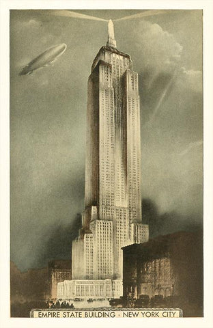 NY-165 Blimp over Empire State Building, New York City - Vintage Image