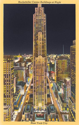 NY-174 Night, Rockefeller Center, New York City - Vintage Image