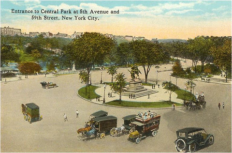 NY-226 Entrance to Central Park, 59th Street, New York City - Vintage Image