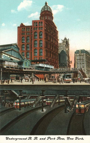 NY-443 Underground Railway and Park Row, New York City - Vintage Image