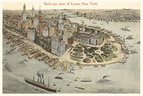 NY-473 Aerial View of Lower New York City - Vintage Image