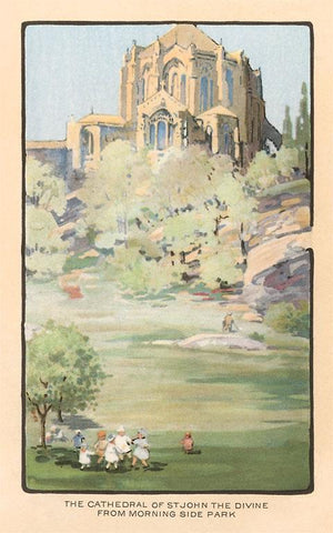 NY-579 Painting of St. John the Divine Cathedral, New York City - Vintage Image