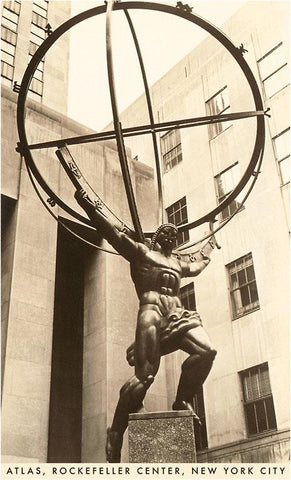 NY-635 Atlas Statue, Rockefeller Center, New York City - Vintage Image