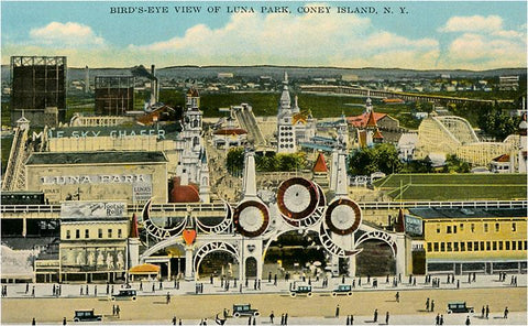 NY-796 Aerial View of Luna Park, Coney Island, New York - Vintage Image