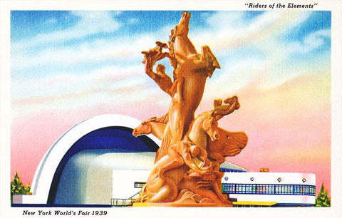 NY-853 Riders of the Elements Statue, New York World's Fair - Vintage Image