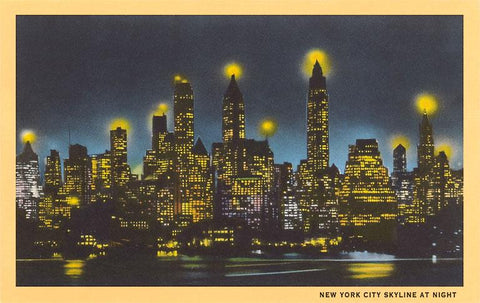 NY-1039 Manhattan Skyline, Night - Vintage Image