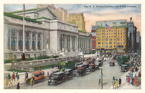 NY-1040 Public Library and Fifth Avenue - Vintage Image