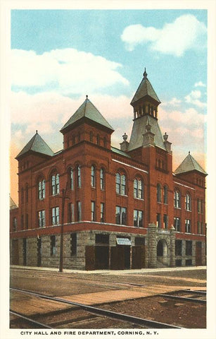 NS-332 City Hall and Fire Station, Corning, New York - Vintage Image
