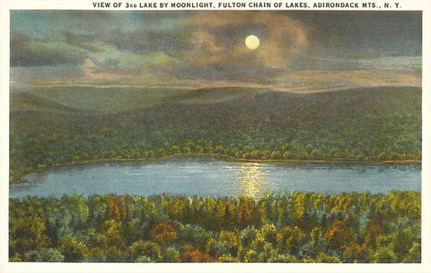 NS-479 Moon over Fulton Lakes, Adirondacks, New York - Vintage Image