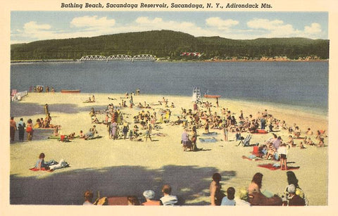 NS-598 Beach Scene, Sacandaga Reservoir, New York - Vintage Image
