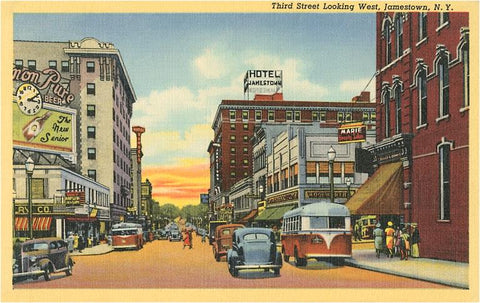 NS-712 Third Street Looking West, Jamestown, New York - Vintage Image