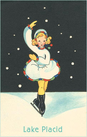 NS-730 Little Girl Ice Skater in Lake Placid, New York - Vintage Image