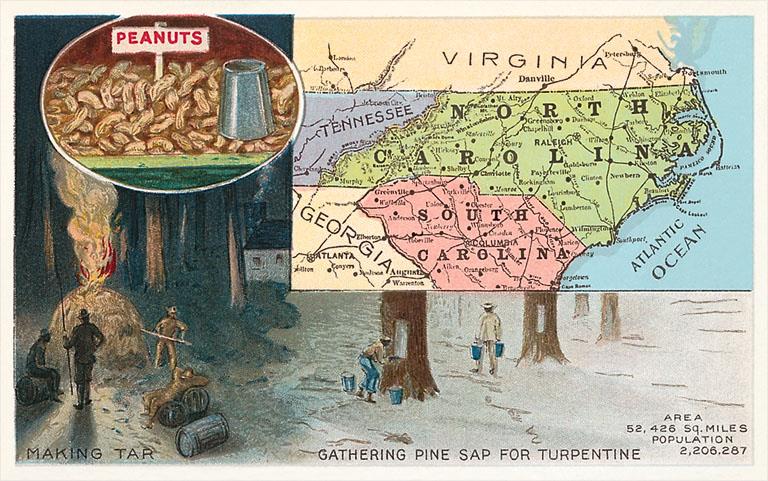 NC-328 Map of Carolinas - Vintage Image