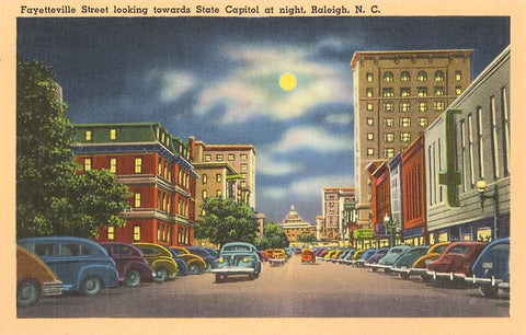 NC-132 Moon over Fayetteville Street, Raleigh - Vintage Image